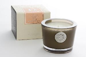 Beautifully vintage, yet uniquely modern gift box contains one candle encased in smoke-brown glass. Candle cover also serves as a unique candle pedestal while burning.