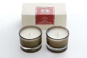 Beautifully vintage, yet uniquely modern gift box contains two votive candles encased in smoke-brown glass.