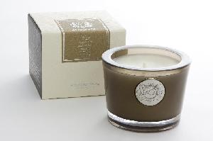 Beautifully vintage, yet uniquely modern gift box contains one candle encased in smoke-brown glass. Candle cover also serves as a unique candle pedestal while burning.