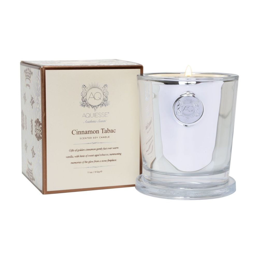 • Fragrance: Aquiesse Cinnamon Tabac Holiday Soy Candle is a gift of golden cinnamon gently dusted over warm vanilla, with hints of sweet aged tobacco, creating a fragrance that brings memories of warm family gatherings around glowing fire.
