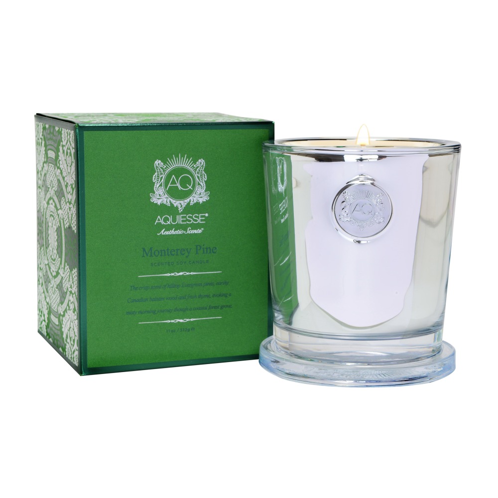 • Fragrance: Aquiesse Monterey Pine Soy Holiday Candle brings the crisp fragrance of hilltop Evergreen pines, earthy Canadian balsam wood and fresh thyme into your home, evoking a misty morning journey through a coastal forest grove.