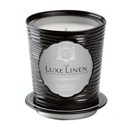 A beautiful and elegant ribbed black candle tin with your favorite Aquiesse candle fragrance. The lid is embossed and is adorned with a contrasting silver colored rope and lettering, with a hidden compartment for the included match book. Use the lid as a pedestal to protect your furniture when the flame is low enough to make the tine hot to the touch, and also to extinguish the flame without all the smoke.