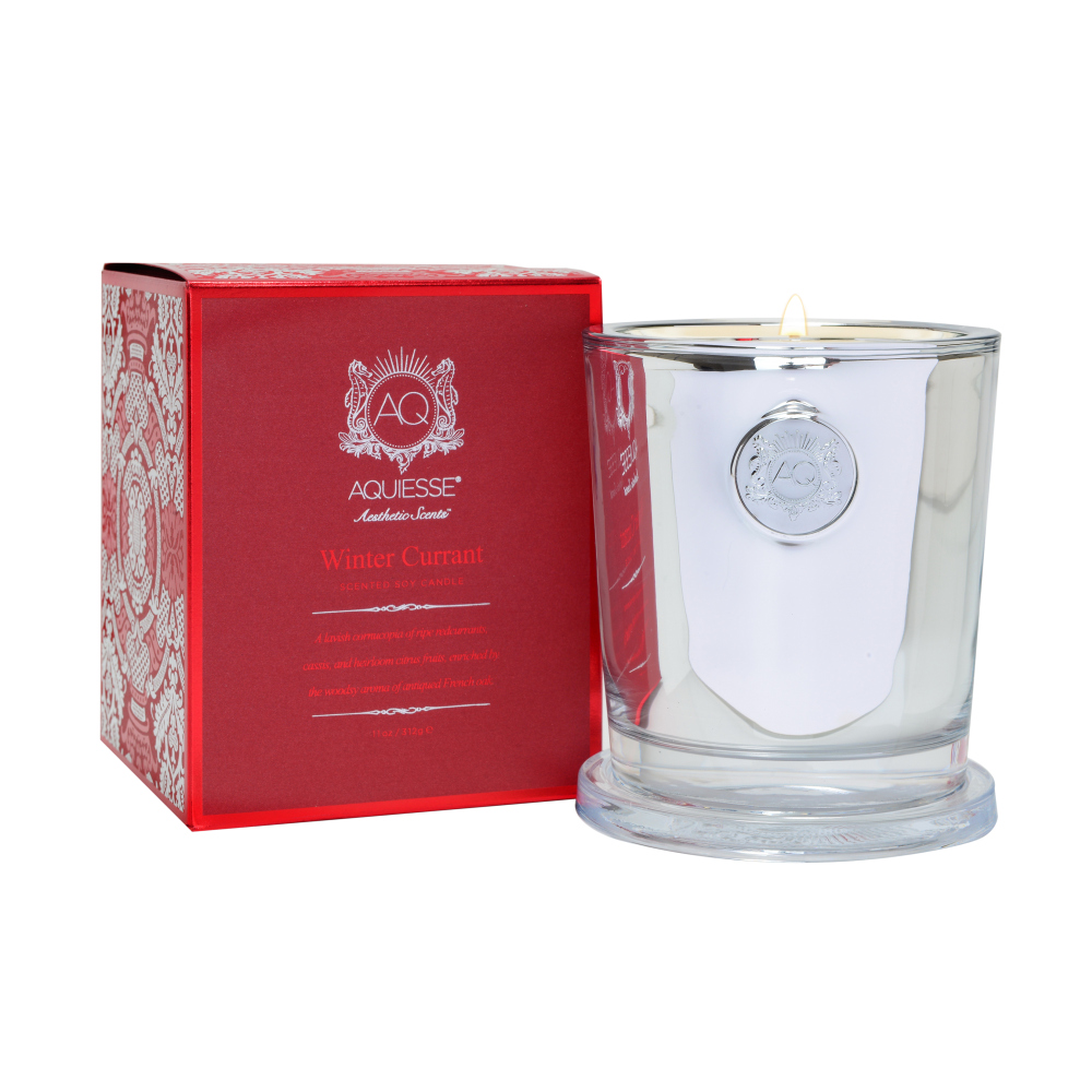 • Fragrance: Aquiesse Winter Currant Holiday Soy Candle is a luxuriously rich fragrance of ripe red currant, cassis, and heirloom citrus fruits with woodsy notes of antiqued French oak. A new incarnation of the ever so popular Aquiesse Rioja fragrance packaged especially for the holidays.