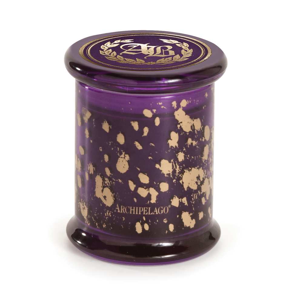 Deep amethyst glass apothecary jar with gold accents for a beautiful presentation.