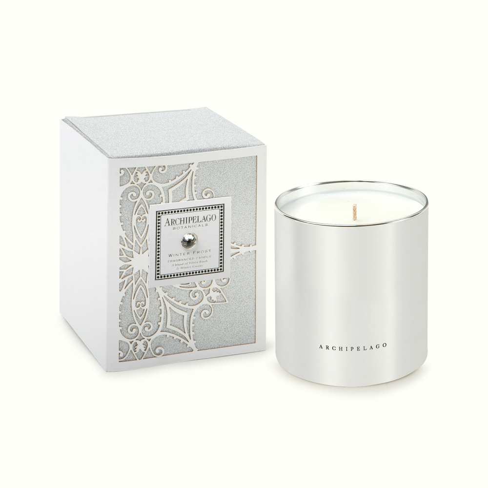 These beautiful Long lasting soy wax boxed candles with cotton wicks come in Gift Giving ready flocked boxes. Laser cut snowflake designs over a metallic silver background give these boxes an elegant look for the holidays.