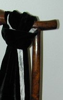 Size: 63 X 15 Black and white scarf. Beautiful 100% silk and velvet scarf made exclusively for Zanadia in Vietnam. Rich black velvet lined with delicate white silk.: