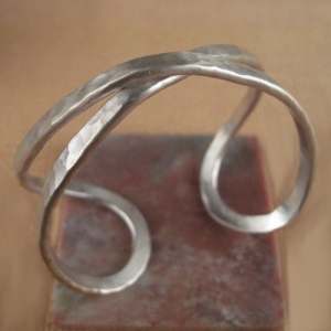 A twisted welded continuous flat Sterling Silver wire creates and adjustable light weight cuff that looks beautiful on any wrist.