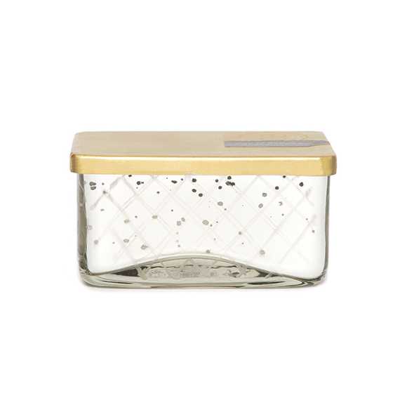 I love love love this mercury glass series filled with exquisitely fragranced candles that burn so well and fill the home with delightful fragrance notes. This particular fragrance has a very subtle citrus, which is clean and not cloying. The light sparking through the glass is very beautiful and creates a relaxing and rich ambiance.