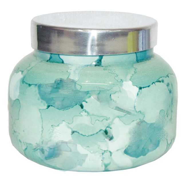 These classic Capri-Blue by Aspen-Bay Glass Watercolor Jars are made of Recycled Glass, and Recycled Steel Lids and hand filled with pure soy wax and natural lead free wicks. Refining naturally pure soy wax to food grade purity produces a base with very low oil content that it absorbs twice as much fragrance oils as a typical candle resulting in very fragrant candles with clean super slow burn.
