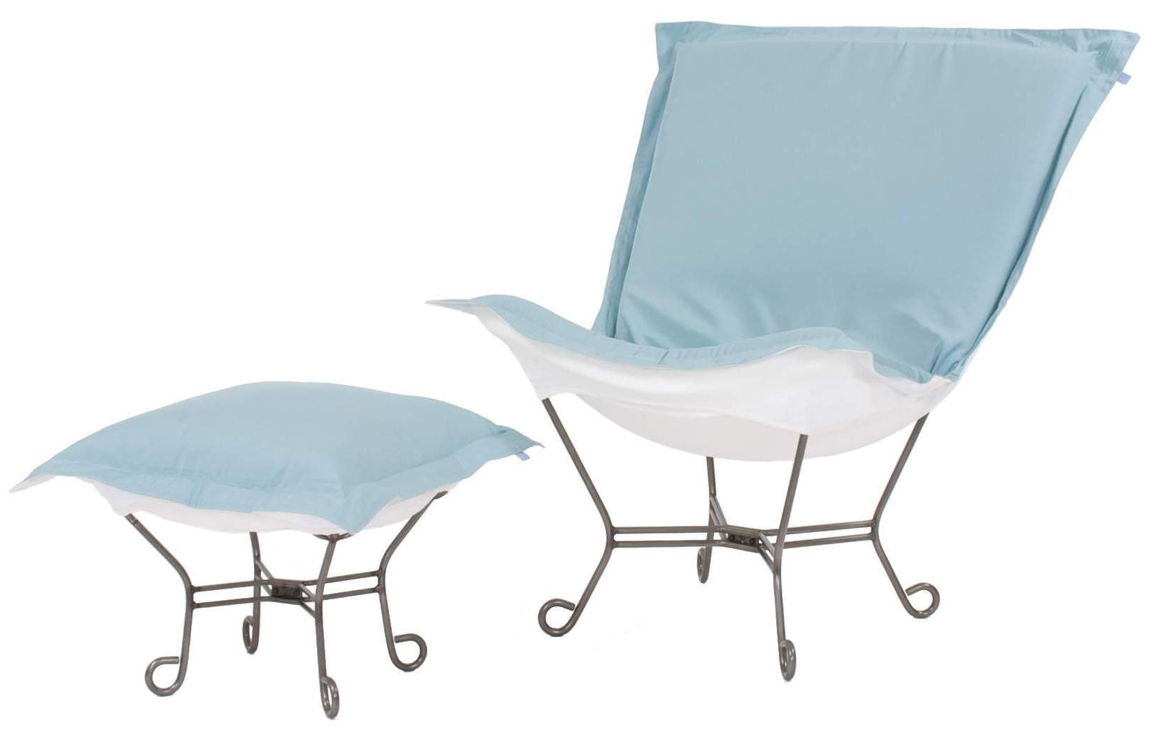 Chicago Textile Puff Chair Frame and Cover with Cushion in Starboard Breeze fabric. The steel frame is made of heavy duty iron with a durable powder coat finish.