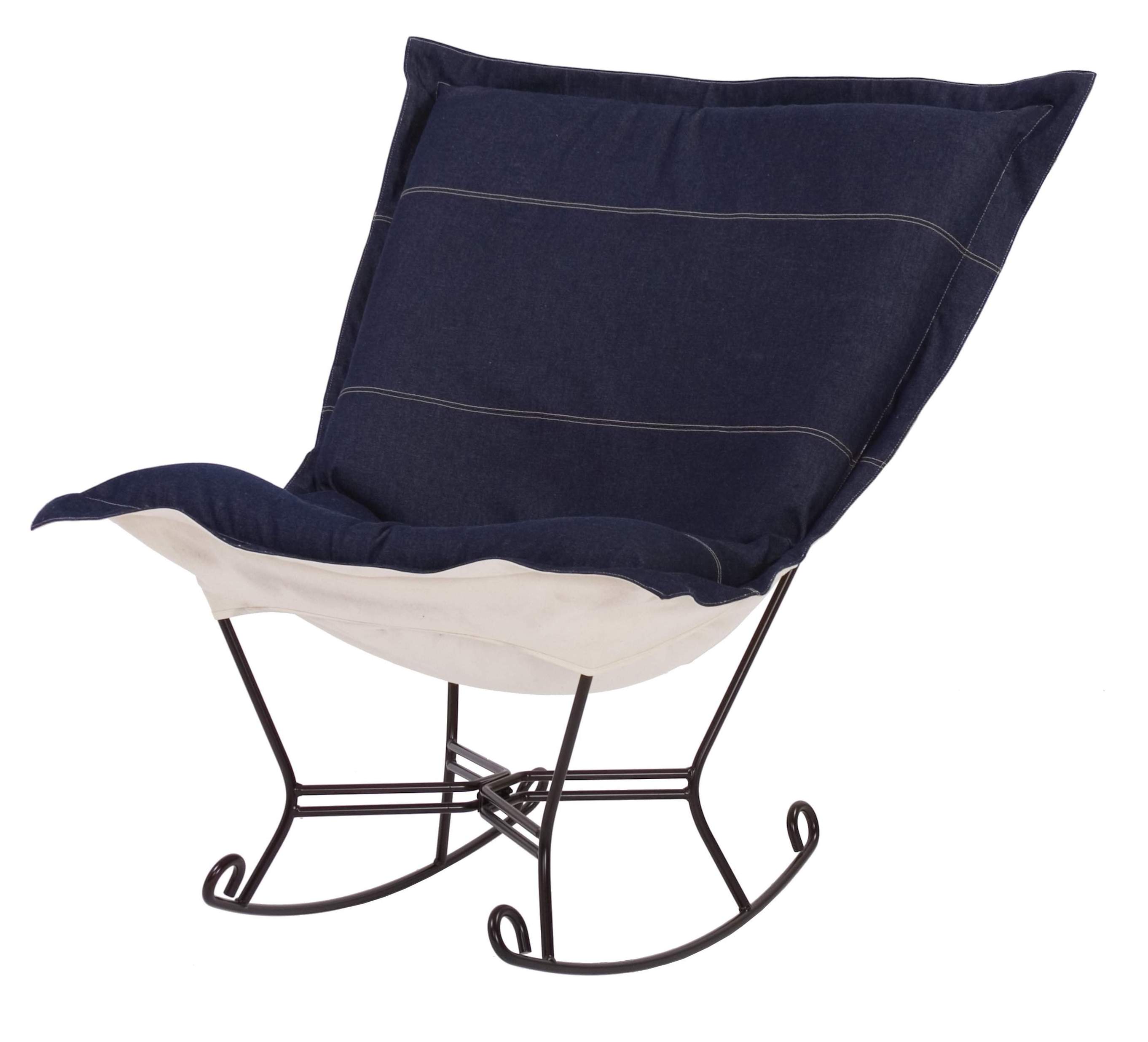 Chicago Textile puff Rocker (Frame + Cover with Cushion) in Denim Indigo. Front Fabric: Denim Indigo .