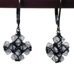 Clear Crystal Wrapped Cross oxidized silver earrings by Dana Kellin.