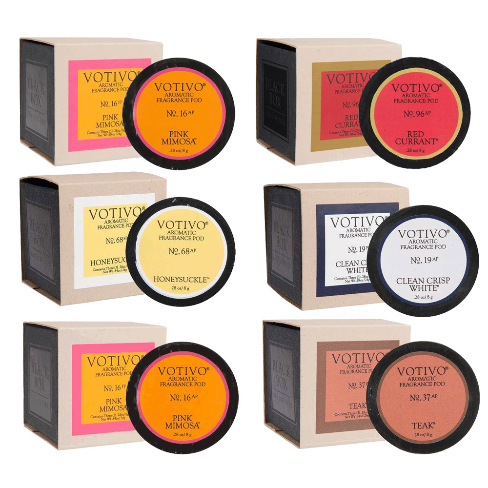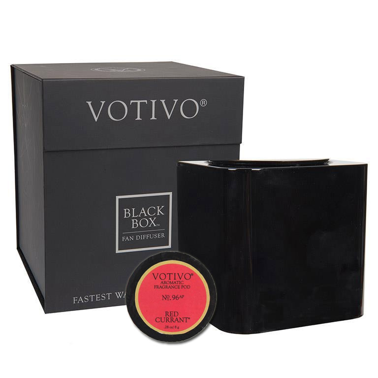The Votivo Black Box fan Diffuser is the fastest way to fragrance a room. A simple push of a button, will release fragrance for 20 minutes. The diffuser comes with one Red Currant Pod that will last for a total of 25 Hours.
