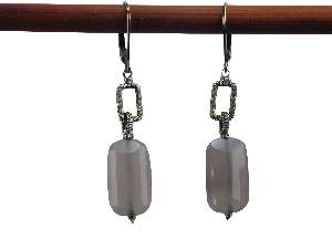 Grey Onyx Rectangle sterling silver earrings by Dana Kellin