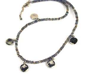 Hammered Silver Discs Necklace on Labradorite Strand by Evelyn Knight.