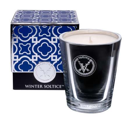 Soy-blend wax hand poured in a silver toned glass. Elegant metallic design box ideal for holiday gift giving.