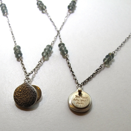Jeanine Payer Rain necklace with grey-green sapphire and 18K gold.