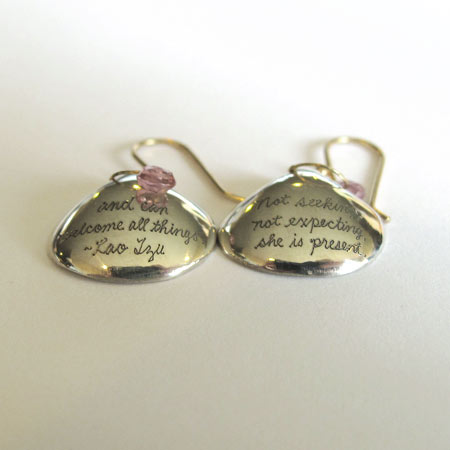 Special Engraving: "Not seeking, not expecting, she is present, and can welcome all things." Lao Tzu.