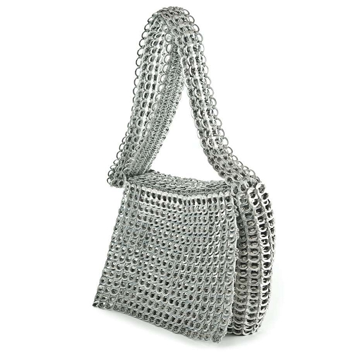 Designed for women who like to keep their hands free, the Masha slings across the chest and hangs comfortably on your hip. Supple and lightweight, it's hand crocheted with over 1,600 recycled aluminum pull-tabs. Comes with nylon fabric liner, YKK zipper closure, one inside zipped pocket, shoulder strap with hand crocheted padding.