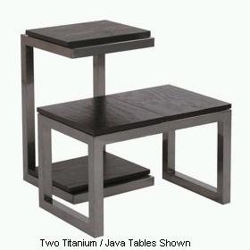 Size: 15 X 15 X 24 Very convenient, stylish, and reasonably priced. Use the versatile Opus tables as side tables, TV trays, work tables, or put two together to make a coffee table. The tops come in two different finishes: Maple, and Java wood. The metal bases come in Titanium, Mahogany, and Smoke.More information and pictures..
