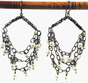 Oxidized sterling silver and white cultured pearls with French hook.