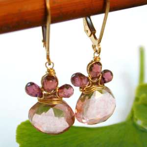 Pink Garnet and Quartz Earrings in Gold Filled.
