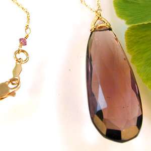 Plum Quartz pendant on long fine chain Necklace in Gold Filled.