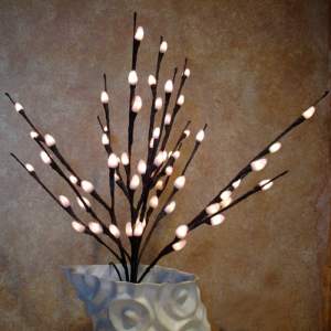 60 tiny bulbs on an 18 inch branch light up lovely pussy willow-shaped bulbs. A surprising, festive way to add sparkle to any decor. Long power cord comes out of bottom of branch and plugs into included low voltage transformer.. From The Light Garden