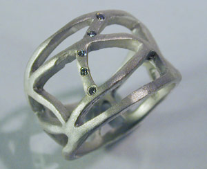 I received the cobweb ring for Christmas and I love it. The open design is so dramatic. I also have the wide silver brushed ring with tiny diamonds scatterd about.