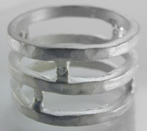 Thinner bands and lighter in weight than I'd expected, but I do like this ring. It is classy and the diamonds add just enough sparkle against the matet silver. A keeper!