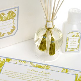 Lychee's exotic essence is combined with several other staples of Asian cuisine: juicy mango, fresh papaya, spicy cilantro, and crisp green coconut leaves. The result is an incomparably lush tropical treat.