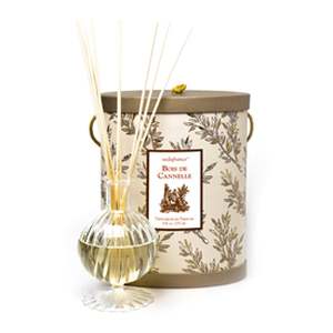 Fragrance: Bois de Cannelle, or Cinnamon Bark is a warm fragrance piqued with the addition of Eucalyptus buds and woodsy juniper berries. This mixture is poured over a base of Myrrh and Amber for a fresh take on a classic fragrance. .