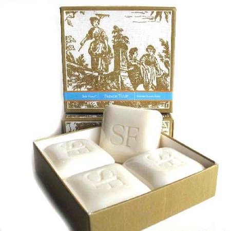 An elegant gift box with four soaps in your favorite fragrance. Makes for an elegant hostess gift that will infuse the air with an amazing fragrance.