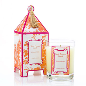 Seda France Pagoda Candle in Clementine. 14-ounce hand poured paraffin candle burns for 60+ hours.