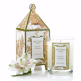 In the Pagoda Candles, this Elegant Gardenia is my other favorite fragrance. I can't resist lighting a Candle in every room of my home (even my laundry room)everyday for several hours. Wonderful and refreshing, with unwanted odors being eliminated. The combined fragrances throughout the rooms gives an interesting and plesant scent. I love it!
