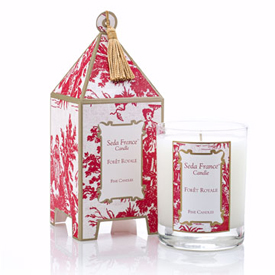 Seda France Pagoda Candle in Foret Royale. 14-ounce hand poured paraffin candle burns for 60+ hours.