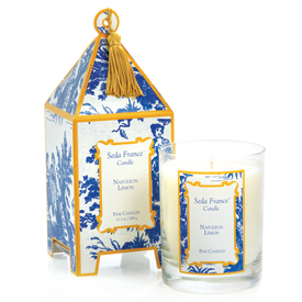 Seda France Pagoda Candle in Japanese Quince. 14-ounce hand poured paraffin candle burns for 60+ hours.