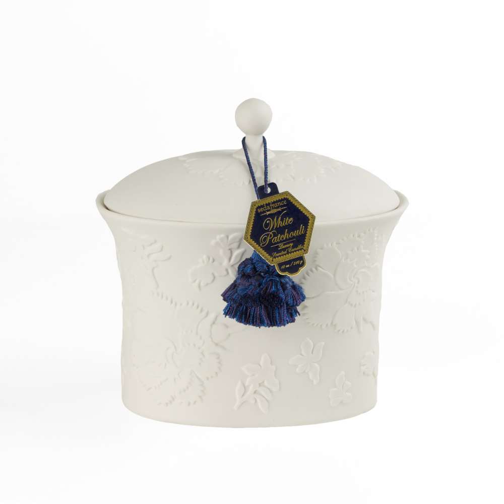 Two wicks light up this embossed oversized candle from Seda France. A cobalt blue tassle adds a decorative touch, while the two wicks allow for extra fragrance throw from this impressive and elegant candle.