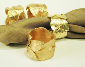Silver Seasons Table Art Bay Leaf Set of Four Napkin Rings.