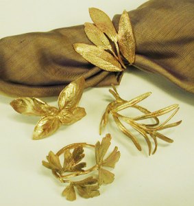Silver Seasons Table Art Italian Herb Set of Four Napkin Rings.
