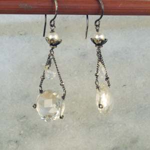 Oxidized Sterling Silver Chain with double Quartz drops.