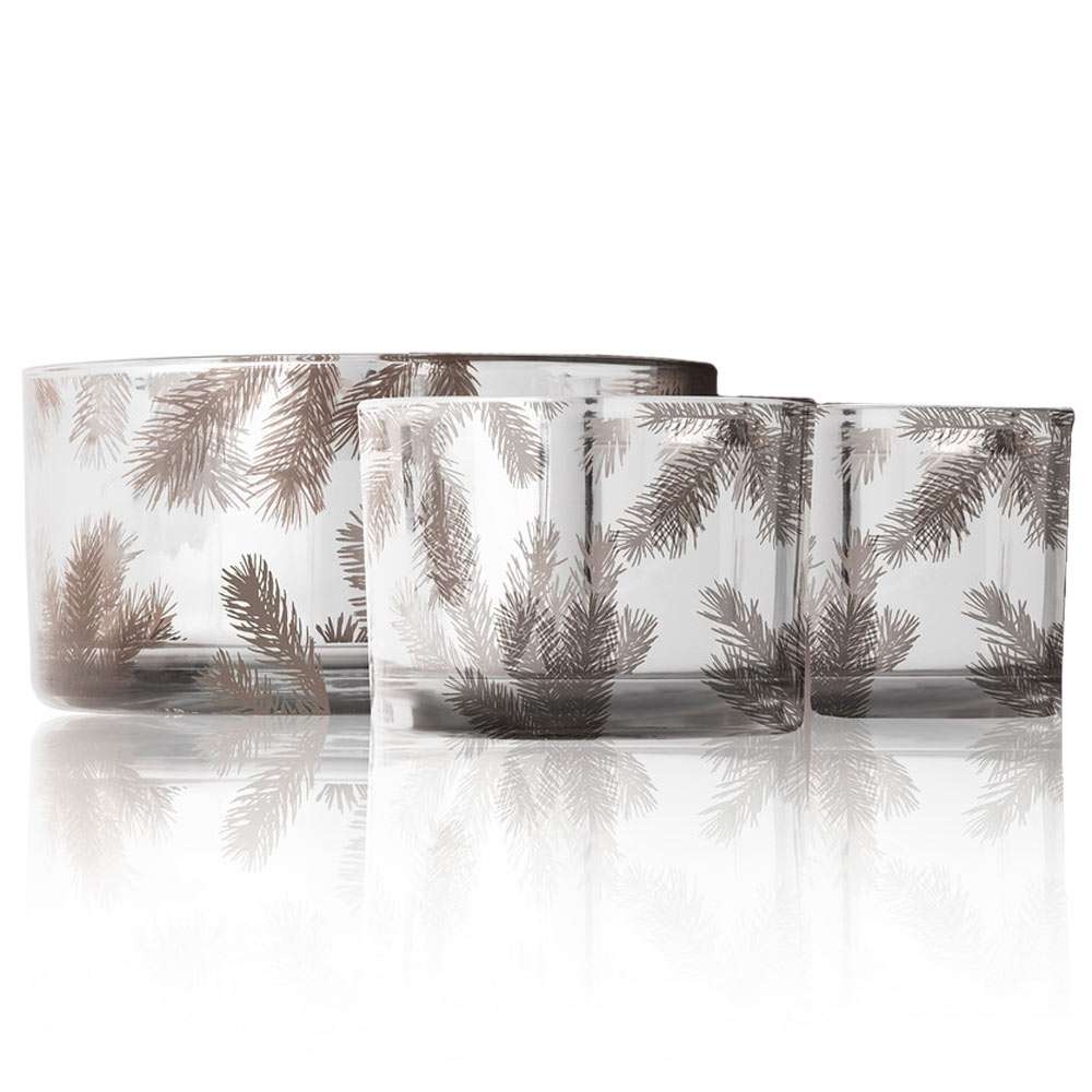 A stunning center piece. The four wicks on this Frasier Fir candle will fragrance a very large room with ease, and create a very dramatic effect. The mirrored silver glass with a pine needle motif will illuminate and flicker with every flame movement.