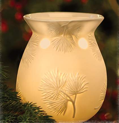 Experience the Frasier Fir in a new way with this Wax Warmer in a raw porcelain finish. The warmer is embossed with a decorative pine needle pattern that is perfect for the holidays and year-round decor. Use a tea light to warm the wax melt and radiating a soft, continuous Frasier Fir fragrance. The warmer Set includes one warmer, one un-scented tea light and one wax melt.