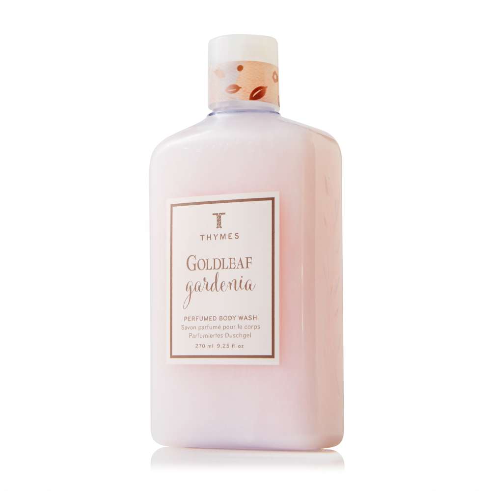 Thymes Goldleaf Gardenia Body Wash.