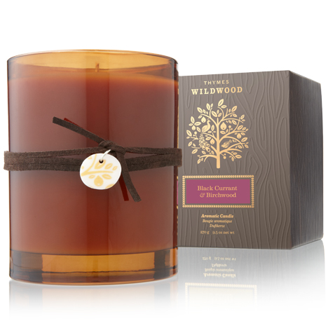 Thymes Wildwood Black Currant & Birchwood Candle.