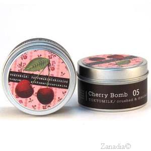 TokyoMilk Cherry Bomb No 05 Candle Tin. From TokyoMilk Parfumarie Curiosite. 6 Oz, 3 in diam. Soy blend candle tin .