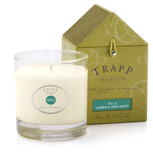 Trapp Candles No 21-Amber & Bergamot, 7 Oz Poured Candle in a newly designed box with the classic Trapp house design. A smooth, velvety combination of aromatic bergamot and sultry amber.