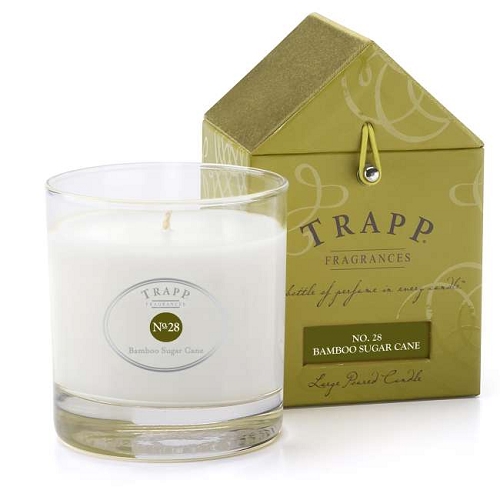 Trapp Candles No 28-Bamboo Sugar Cane, 7 Oz Poured Candle in a newly designed box with the classic Trapp house design. Notes captured from the heart of the sugar cane with a burst of citrus, enhanced with a touch of green bamboo.