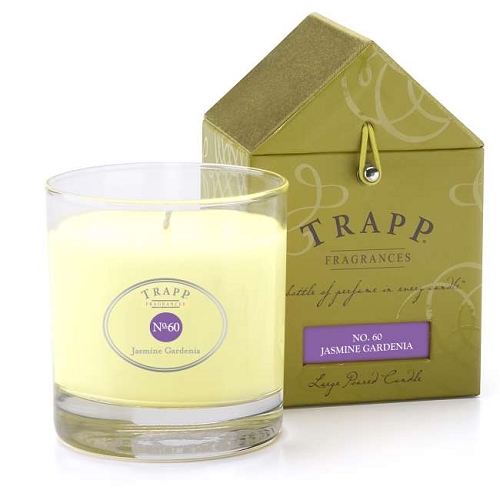 Trapp Candles No 60-Jasmine Gardenia, 7 Oz Poured Candle in a newly designed box with the classic Trapp house design. Classic, sophisticated and stylish. An exquisite combination of the timelessness of jasmine and the heart notes of gardenia with a hint of honeysuckle top notes.