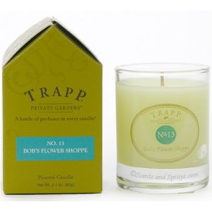 Trapp Votives No 13-Bob's Flower Shoppe, 2.1 Oz Poured Votive in a newly designed box with the classic Trapp house design. Imagine walking into an open air flower market - you are enveloped by the fragrance of all the flowers, freshly cut green stems, and water droplets on each petal.